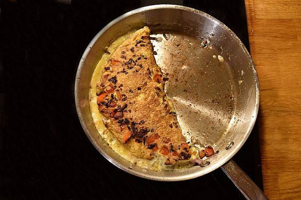 En æggekage eller omelet er som en tærte med sprød bund og skorpe