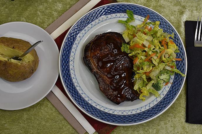 Dagens tallerken, Røgede Caribiske svinekoteletter med bagekartoffel og salat