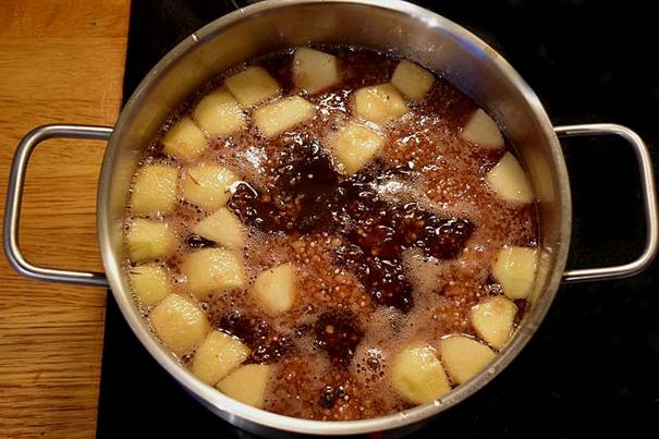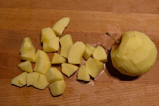 Start med at skylle sveskerne, skræl æbler, fjern kærnehus og