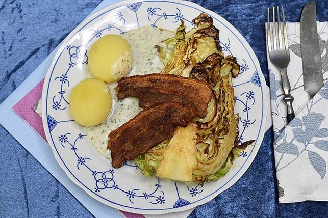 Dagens tallerken, Stegt flæsk med spidskål, kartofler og persillesauce