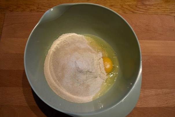 stor skål. Hvis dejen bliver for stiv at røre i, vendes den