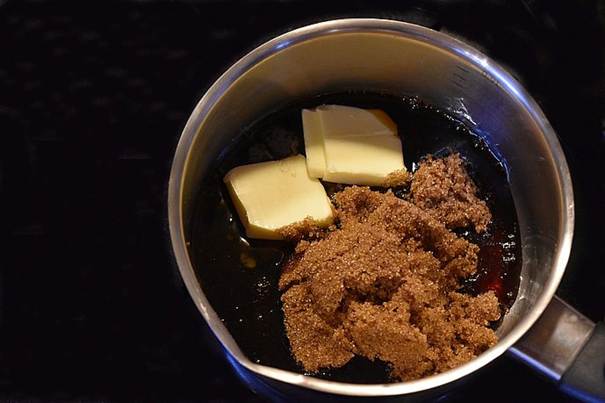 opvarm sirup, farin, smør og kanel i en gryde ved middel varme.
