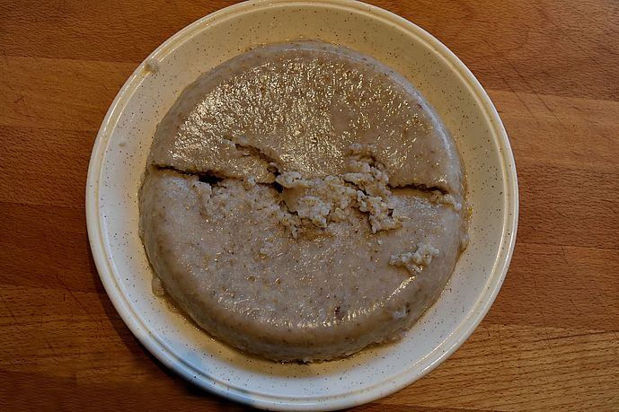 når grøden er helt kold, kan du hælde den ud på en tallerken.