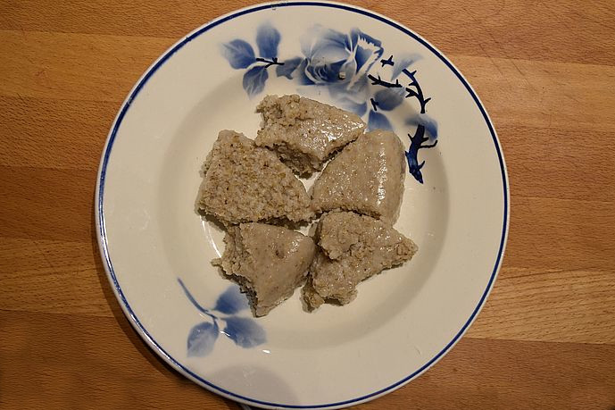 så lav den dagen før eller brug en rest fra sidst du fik vandgrød. Den kolde grød skæres
